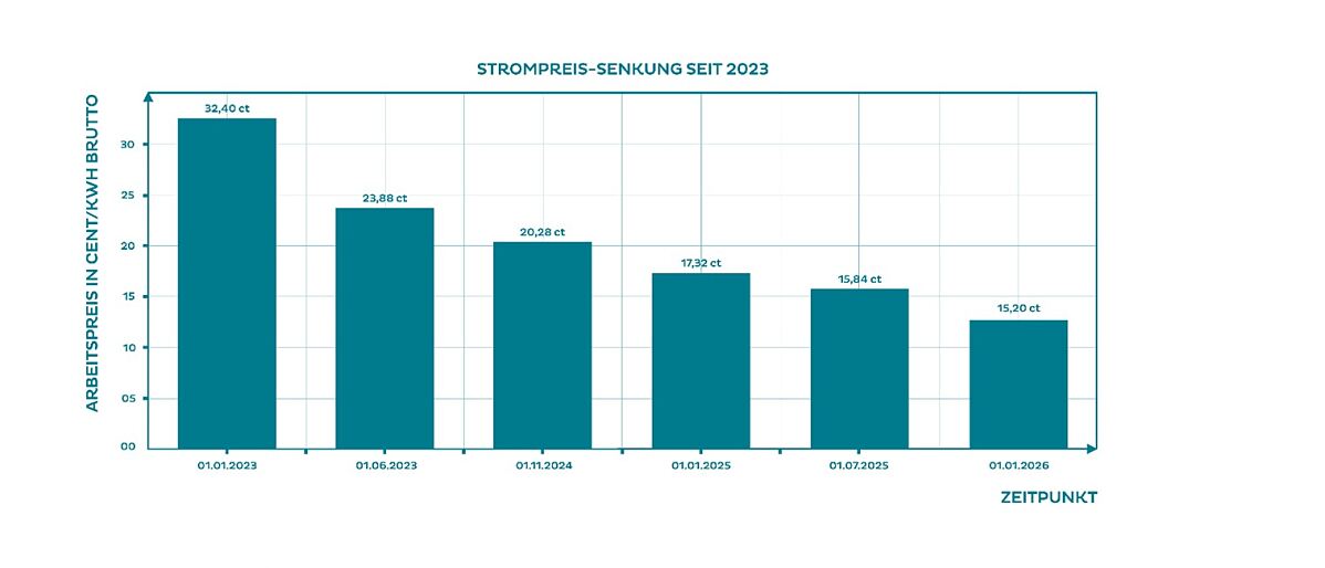 Die Salzburg AG löst ihr Versprechen, Spielräume weiterzugeben, sobald dies möglich ist, erneut ein. Der Salzburg AG Strompreisdeckel wird ebenso für das Jahr 2026 gelten. Ein durchschnittlicher Haushalt erspart sich dadurch rund 145 Euro brutto pro Jahr. Die Rabattaktion wird allen Kund:innen in den neuen Tarifen automatisch bei ihrer nächsten Jahresabrechnung abgerechnet.